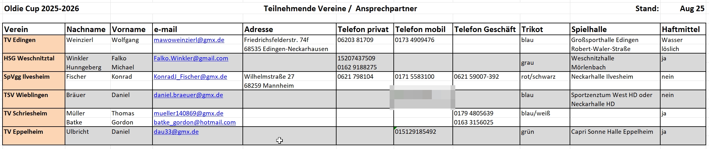 Am 28.8.25 fand traditionell im Ilvesheimer Clubhaus das Treffen der Teilnehmenden Vereine für den Oldie Cup 2025-26 statt. Die Runde startet am 16.11.25 in Schriesheim und endet mit dem üblichen Final Turnier am 29.03.2026 in Eppelheim. Allen Mannschaften einen angenehmen und erfolgreichen Verlauf!