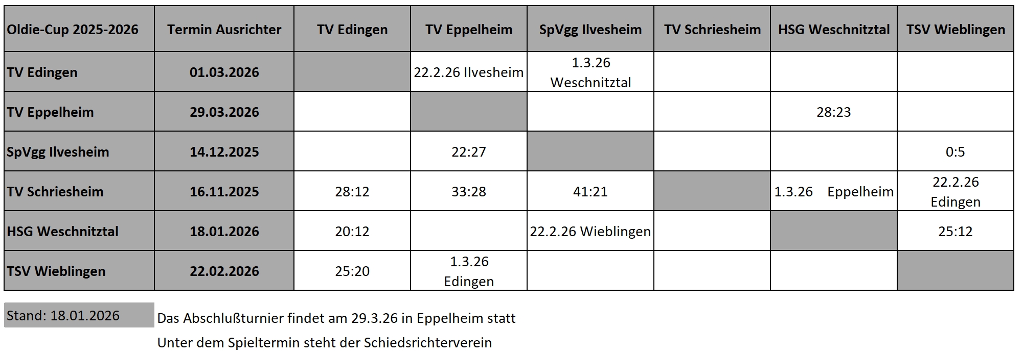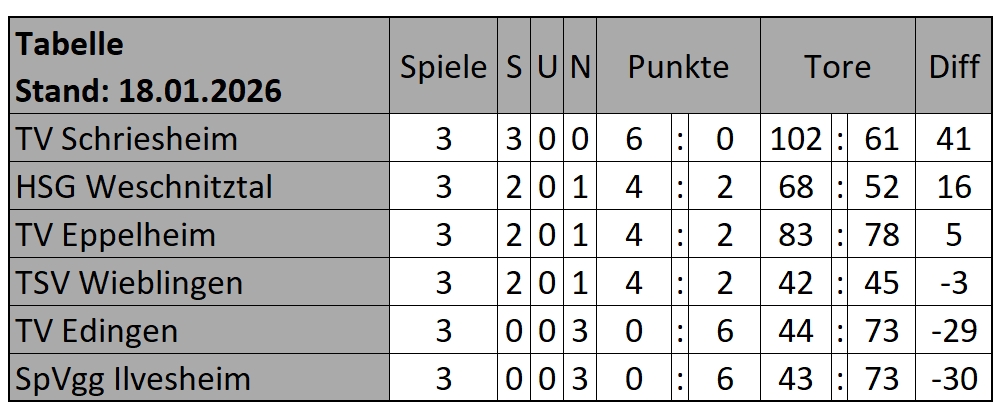 Leider konnte die SpVgg Ilvesheim am Januar Spieltag keine Mannschaft stellen, was eine Wertung des Spiels zu Gunsten für TSV Wieblingen nach sich zog. Die beiden restlichen Spiele wurden planmäßig durchgeführt, hier die Ergebnisse.